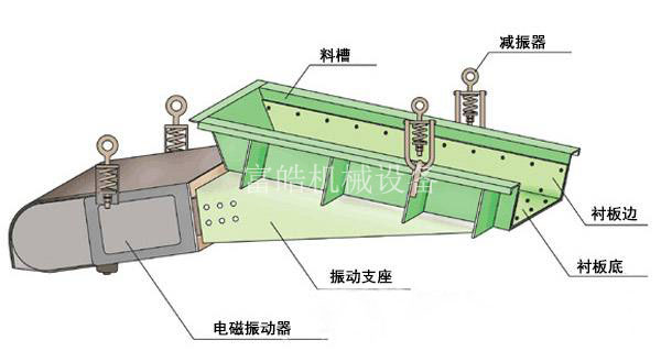 (5)由于給料槽中的物料在給料過程中連續(xù)地被拋起,并按拋物線的軌跡向前進(jìn)行跳躍運(yùn)動(dòng),因此給料槽的摩損較小。